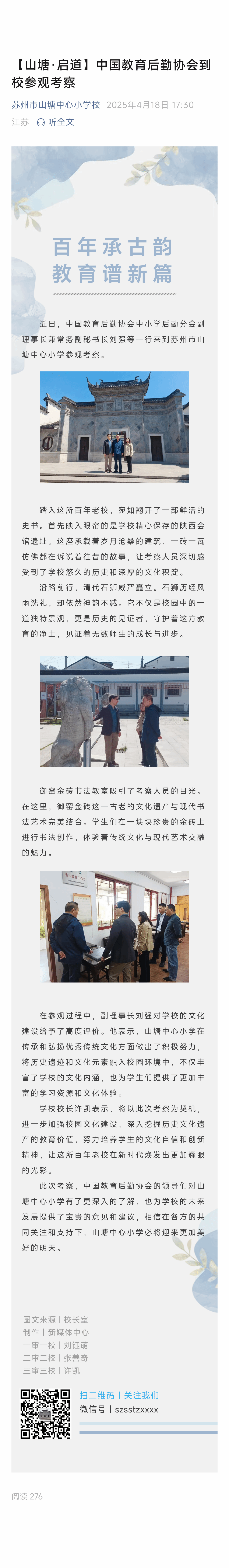苏州市山塘中心小学校紧邻山塘街、依傍山塘河。2009年9月,学校易地重建,新校占地面积为10566平方米,建筑面积7168平方米。近年来,学校先后获得“江苏省绿色学校”“江苏省冬季三项活动先进学校”“苏州市教育现代...